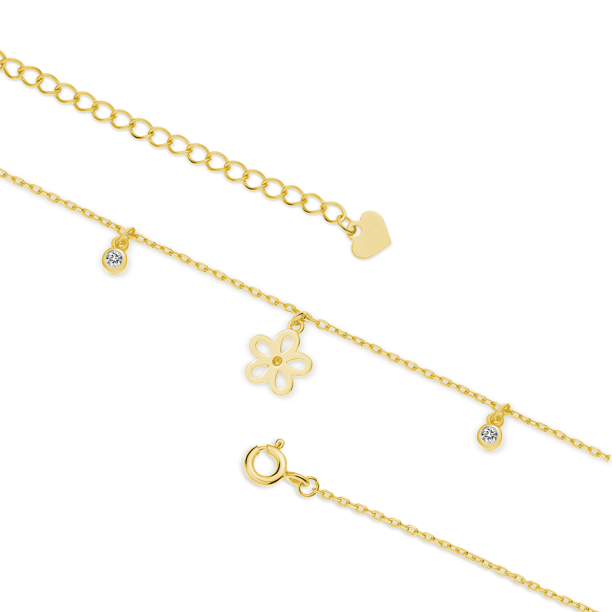 Pozłacana bransoletka na nogę z kwiatkami i cyrkoniami