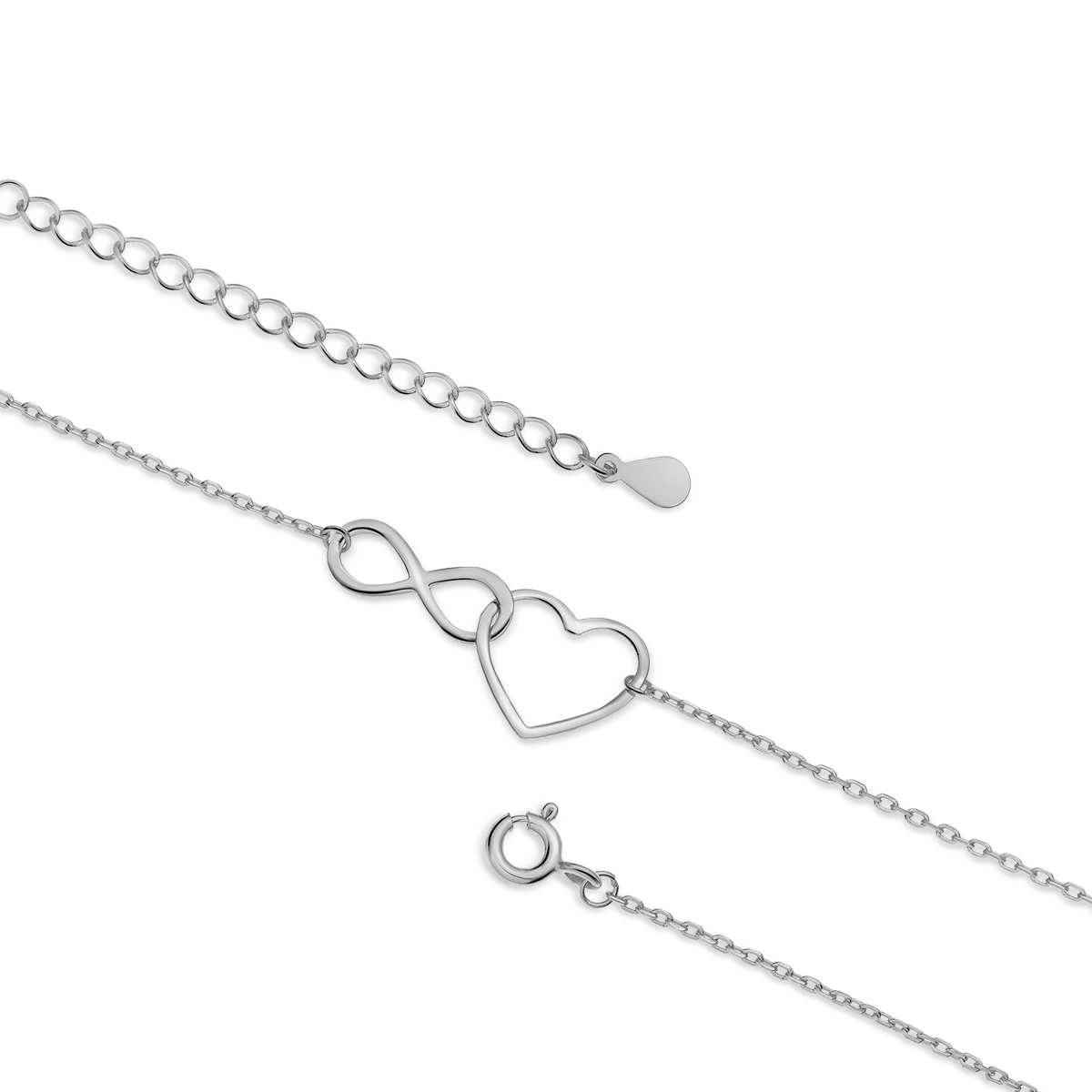 Srebrna bransoletka na nogę z nieskończonością i sercem