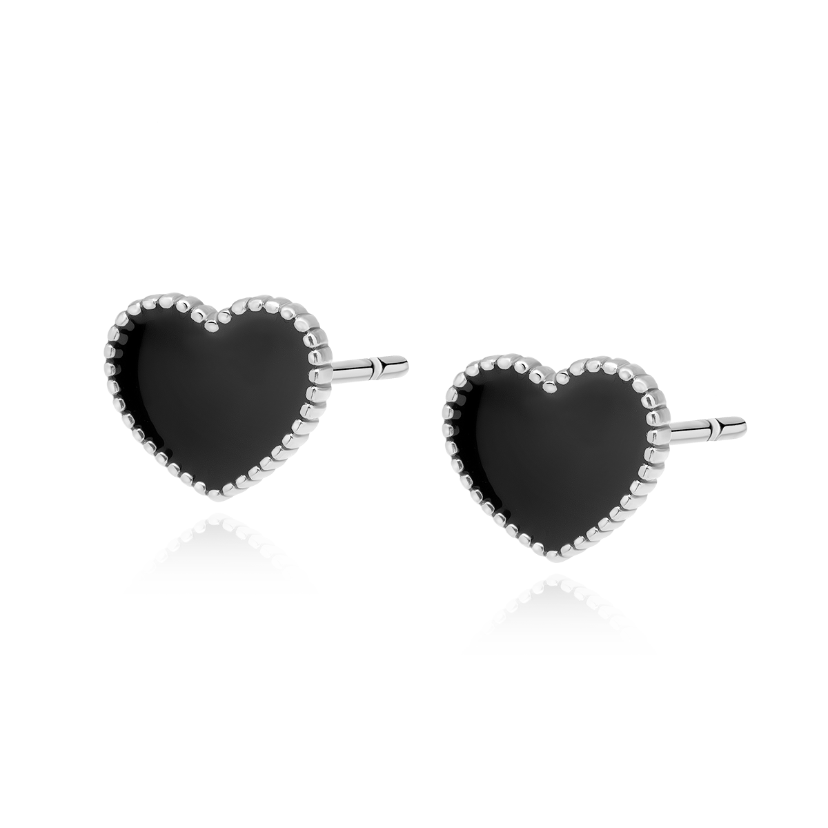 Srebrne kolczyki czarne emaliowane serca
