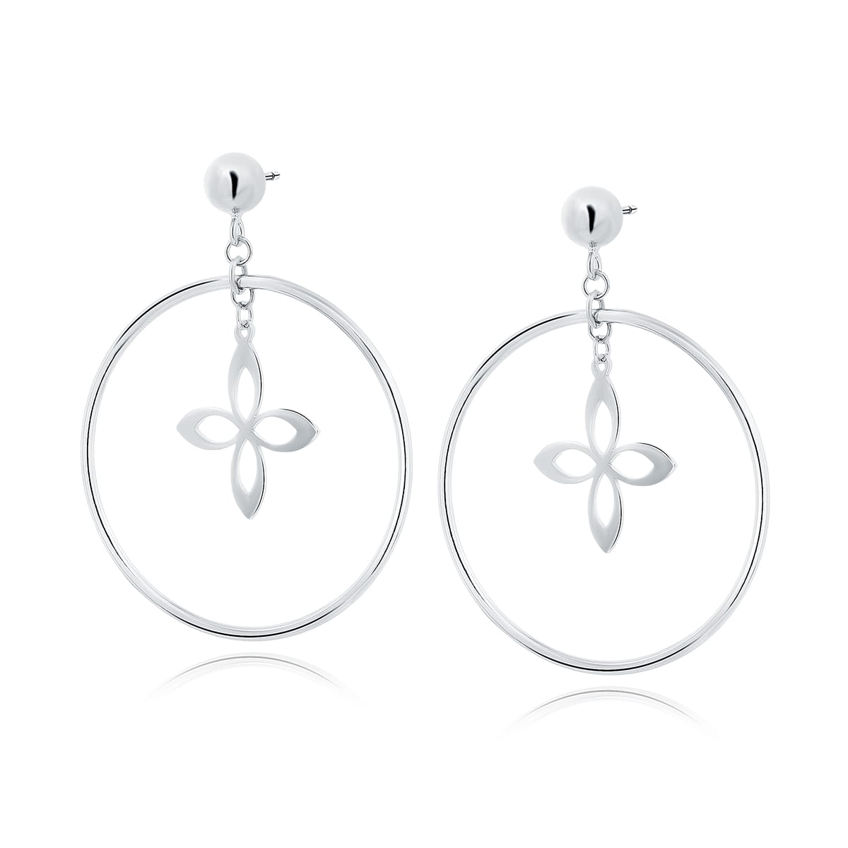 Srebrne kolczyki - koła z kwiatkiem