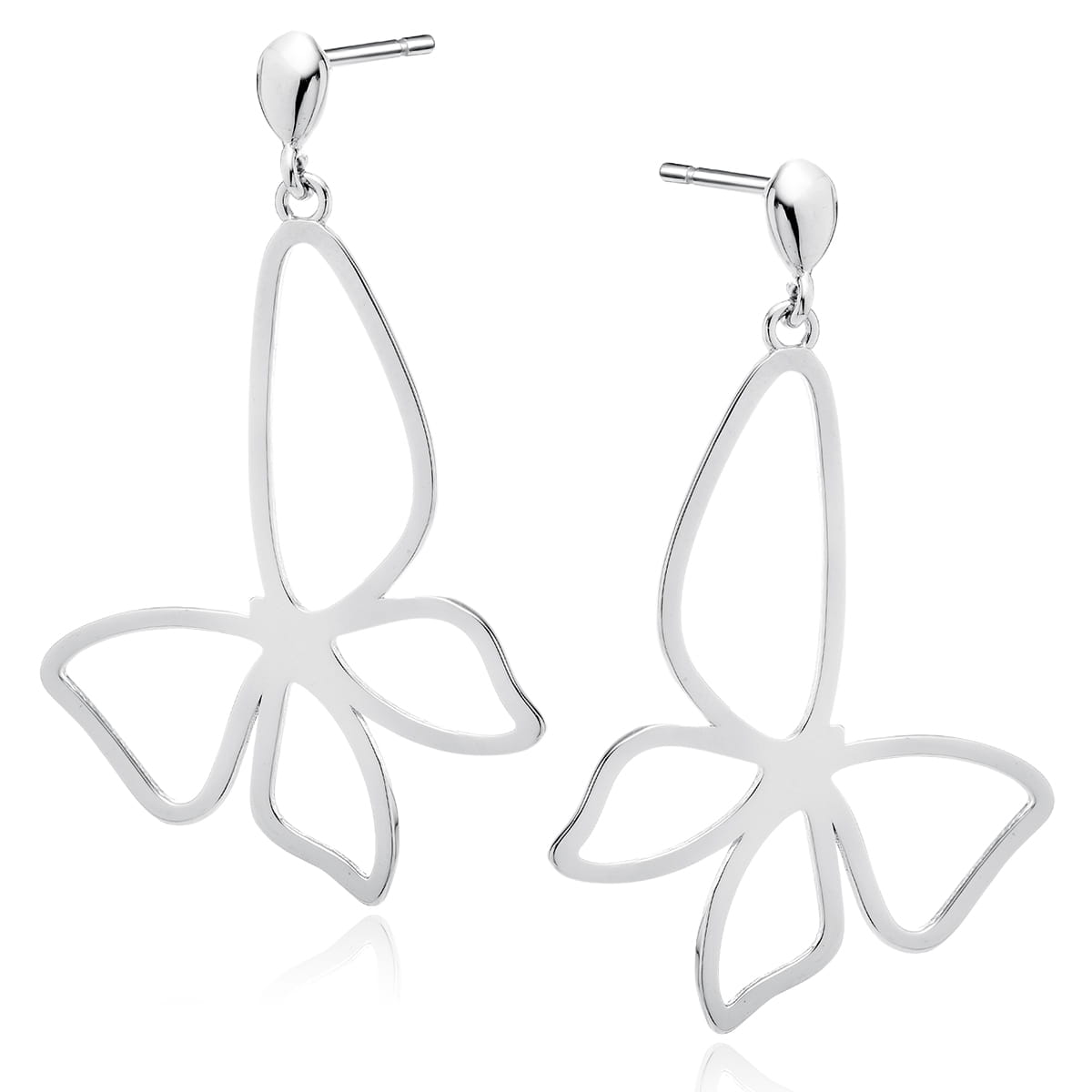 Opis ogólny: Kolczyki w kształcie motylków wykonane z najwyższej jakości srebra próby 925, pokryte powłoką z rodu, która nadaje im ciemniejszy kolor i wysoki połysk, przypominający biżuterię z białego złota.