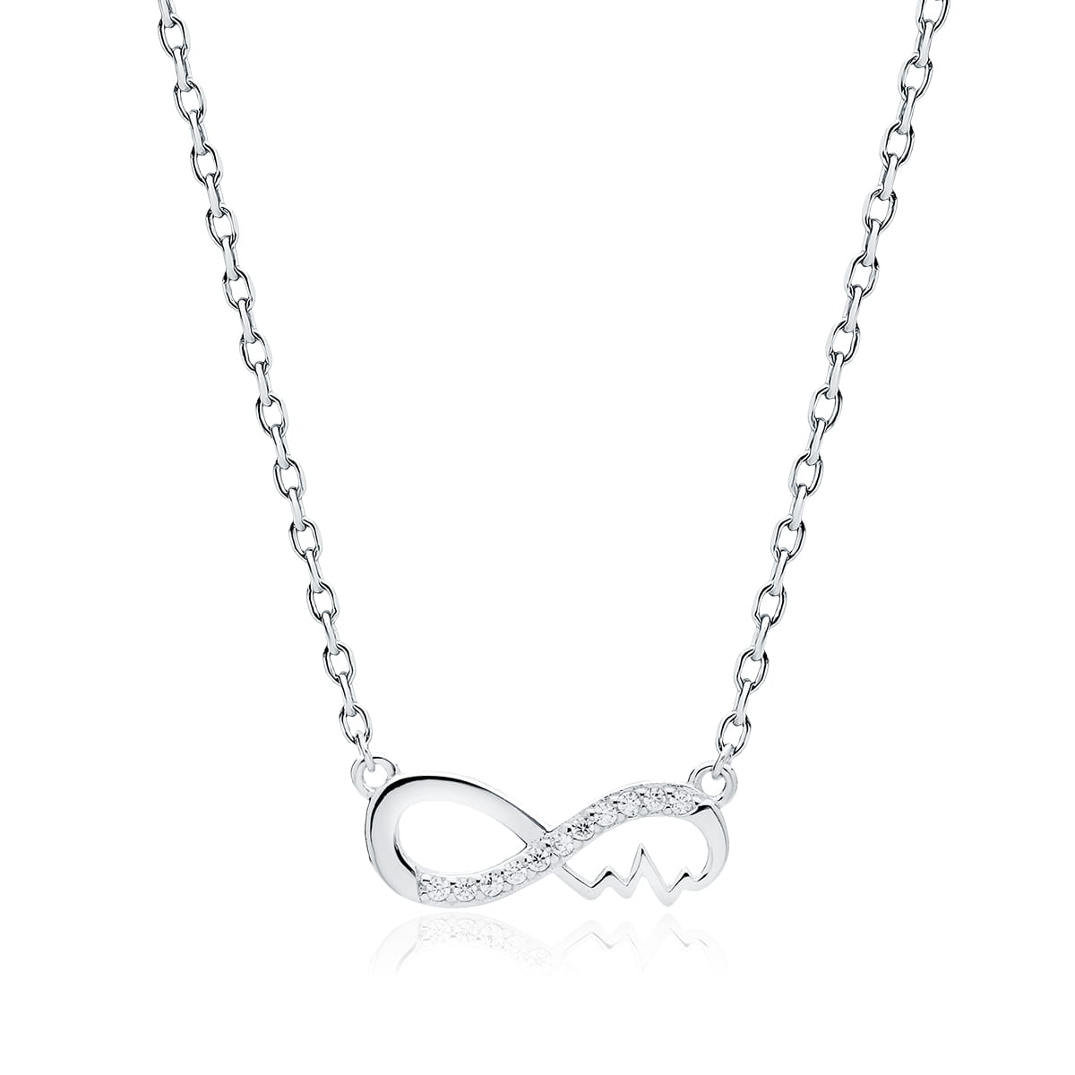 Srebrny naszyjnik znak nieskończoności z pulsem