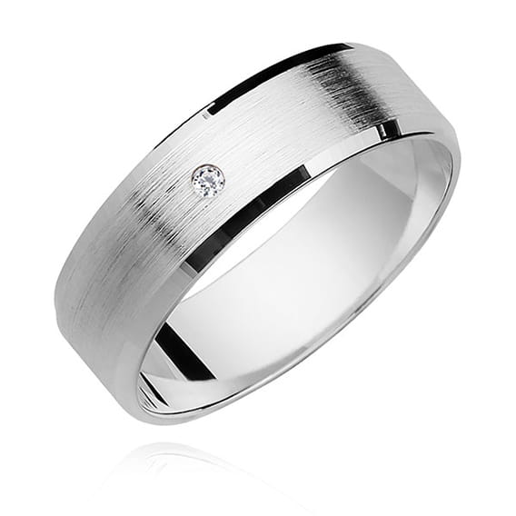 Gładka, satynowana powierzchnia obrączki nadaje jej wyjątkowy charakter, tworząc delikatny matowy efekt, który przyciąga uwagę swoją subtelnością. Dodatkowo, centralnie umieszczona biała cyrkonia dodaje pierścieniowi delikatnego blasku i elegancji, nadając mu wyjątkowego uroku.