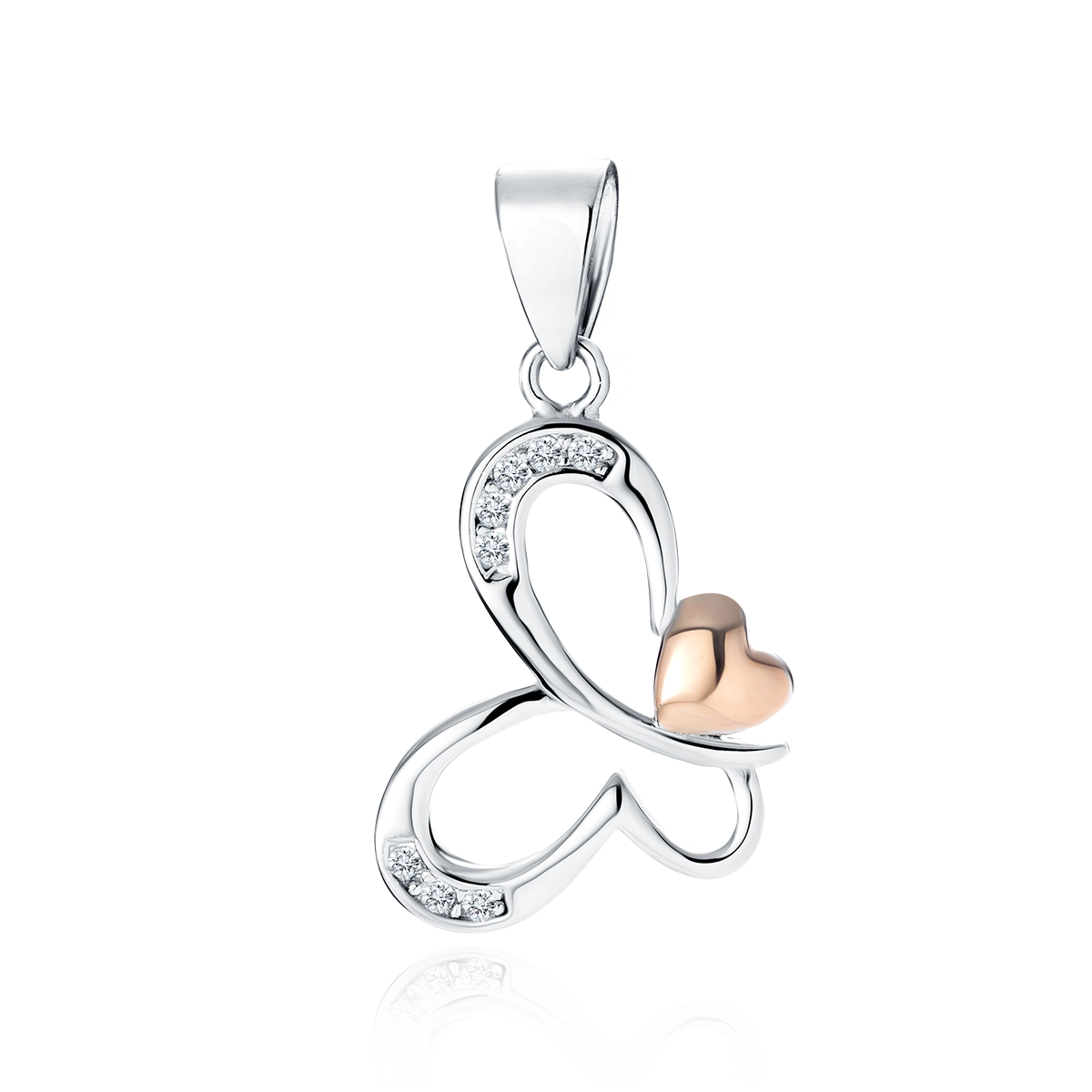 Pozłacana zawieszka motyl z sercem różowym złotem białymi cyrkoniami