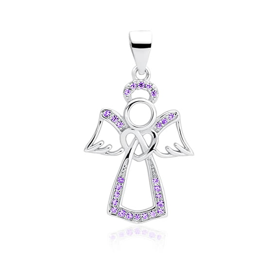 Srebrna zawieszka anioł z z fioletowymi cyrkoniami