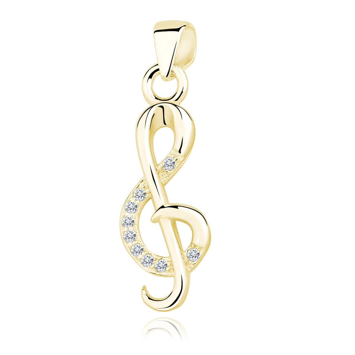 Wyobraź sobie, że na powierzchni tego małego klucza wiolinowego osadzono dziesiątki maleńkich białych cyrkonii, które rozświetlają każdy ruch. To właśnie microsetting, czyli precyzyjna i kosztowna technika, która nadaje biżuterii luksusowy blask bez nadęcia. Ten drobny detaliści potrafią zawładnąć całą sceną.