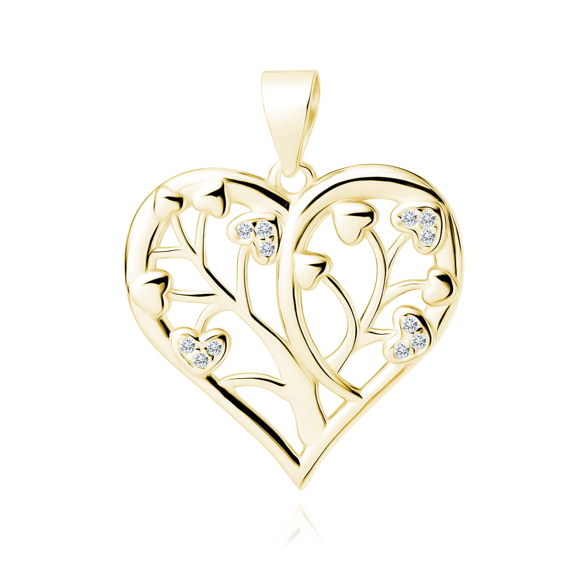 iBella Srebrna zawieszka serce z białymi cyrkoniami złocona 14K — blask, który nie udaje